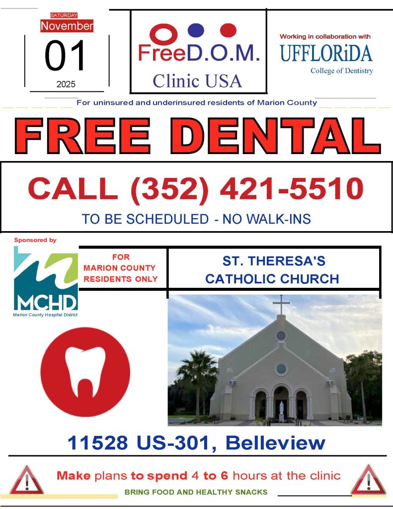 | Sat. Nov 1 9:30 am | DENTAL CLINIC | Call to register |